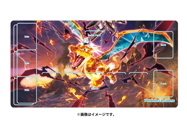 Tapete de juego de goma premium con diseño de Evil Star Charizard. Ideal para partidas de Pokemon TCG.